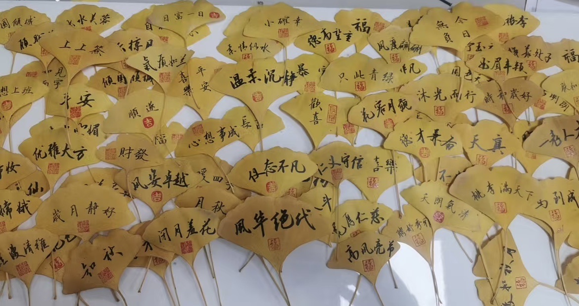 把金灿灿的银杏叶,变成会呼吸的信笺,每一片都藏着悄悄话:“平安喜乐”是长久的守望,“银为有你,三生有杏”是浪漫的注脚,“小满胜万全”是智慧的闪光。