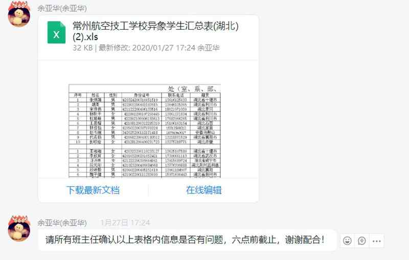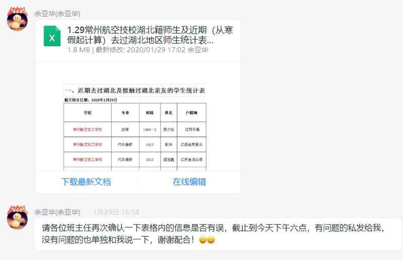 切实做好“三张清单”,即“近期去过湖北及接触过湖北亲友的学生、教职工统计表,目前在湖北的学生、教职工统计表,奔牛教育条线疫情防控统计表”的收集汇总,快速完成姓名、学校名称、家庭住址、联系电话等重要信息的建档整理工作,并针对湖北回常师生开展防疫防控重点宣讲。