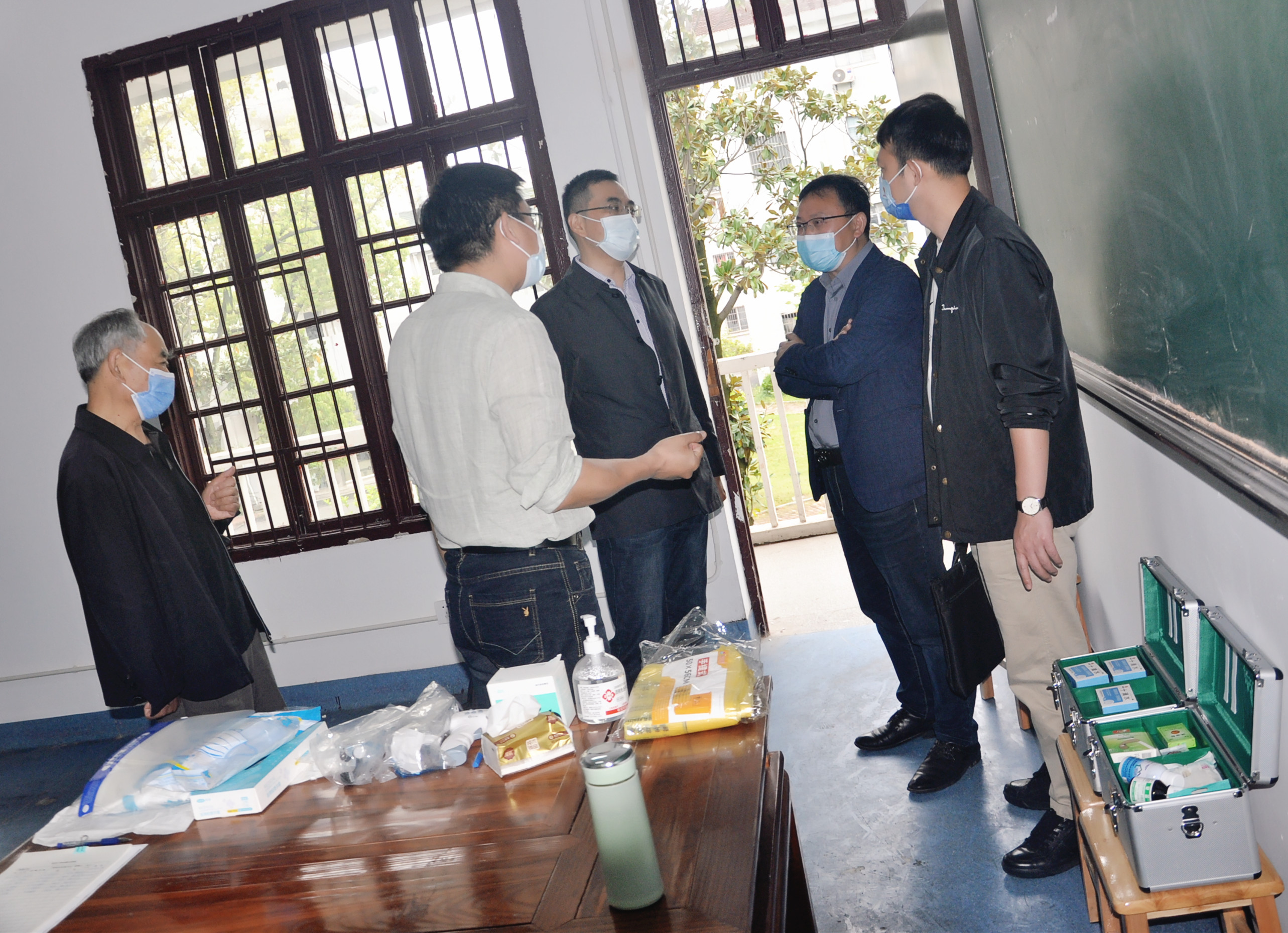 复学当天,常州市人社局副局长刘晓东、职建处处长孙寅松、副处长潘宇来校督查师生员工返校复工复学情况,督查组巡视了校园,并认真地查看了学校防疫物资储备、校医配备、隔离室设置等情况。
