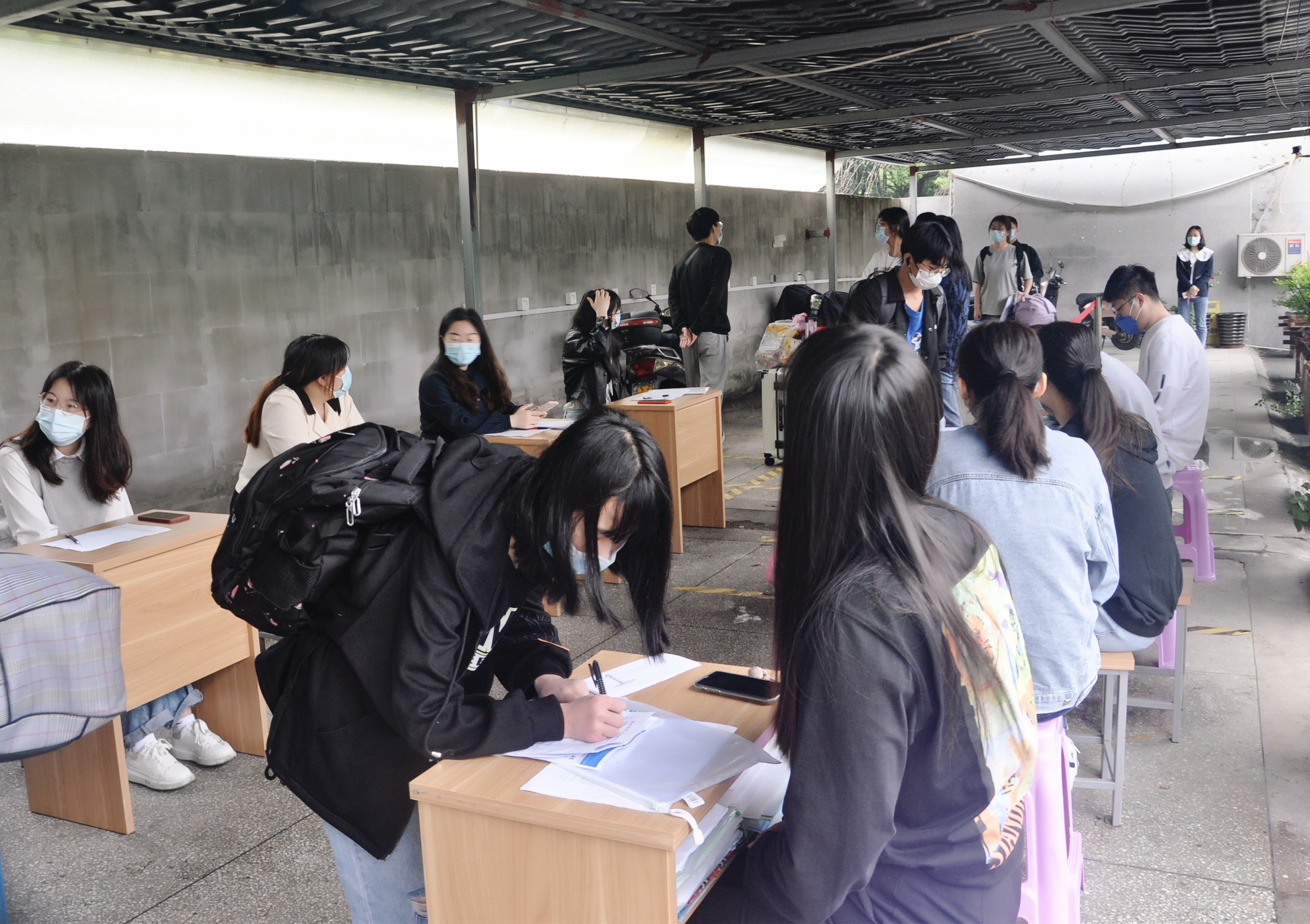 学生在校门口测温、扫场所码、出示健康码、行程码、核酸检测结果阴性证明方可入校,并及时将纸质材料上交至班主任处,学生家长一律不得进校。于复学当日,我校组织所有综合高中返校师生进行全员核酸检测。