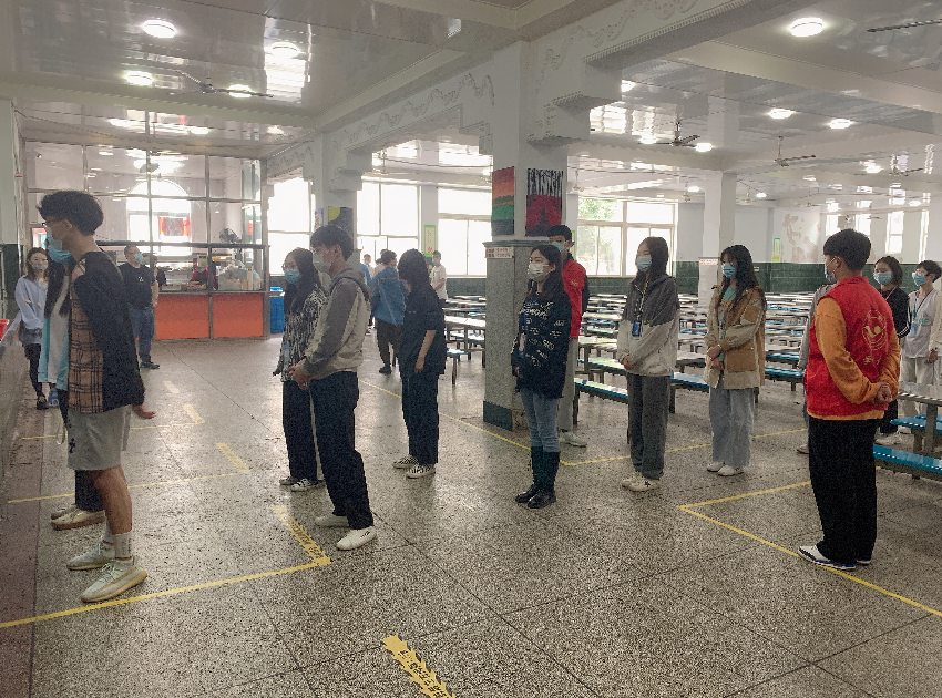 志愿服务工作繁琐且费时费力。食堂秩序维护志愿者们需在用餐高峰期时,引导全校师生排队选餐不扎堆,前后保持一米距,用餐时按规定就坐;核酸检测点的志愿者们有的需要穿上防护服,辅助医护人员进行扫码,有的则需要连续站立多小时,确认师生核酸检测情况;校园巡查的志愿者们则无论晴天或是雨天,都需要定时在校园内进行巡查。“红马甲”们坚守在自己的岗位上,为学校正常教育教学工作贡献了属于自己的青春力量。
