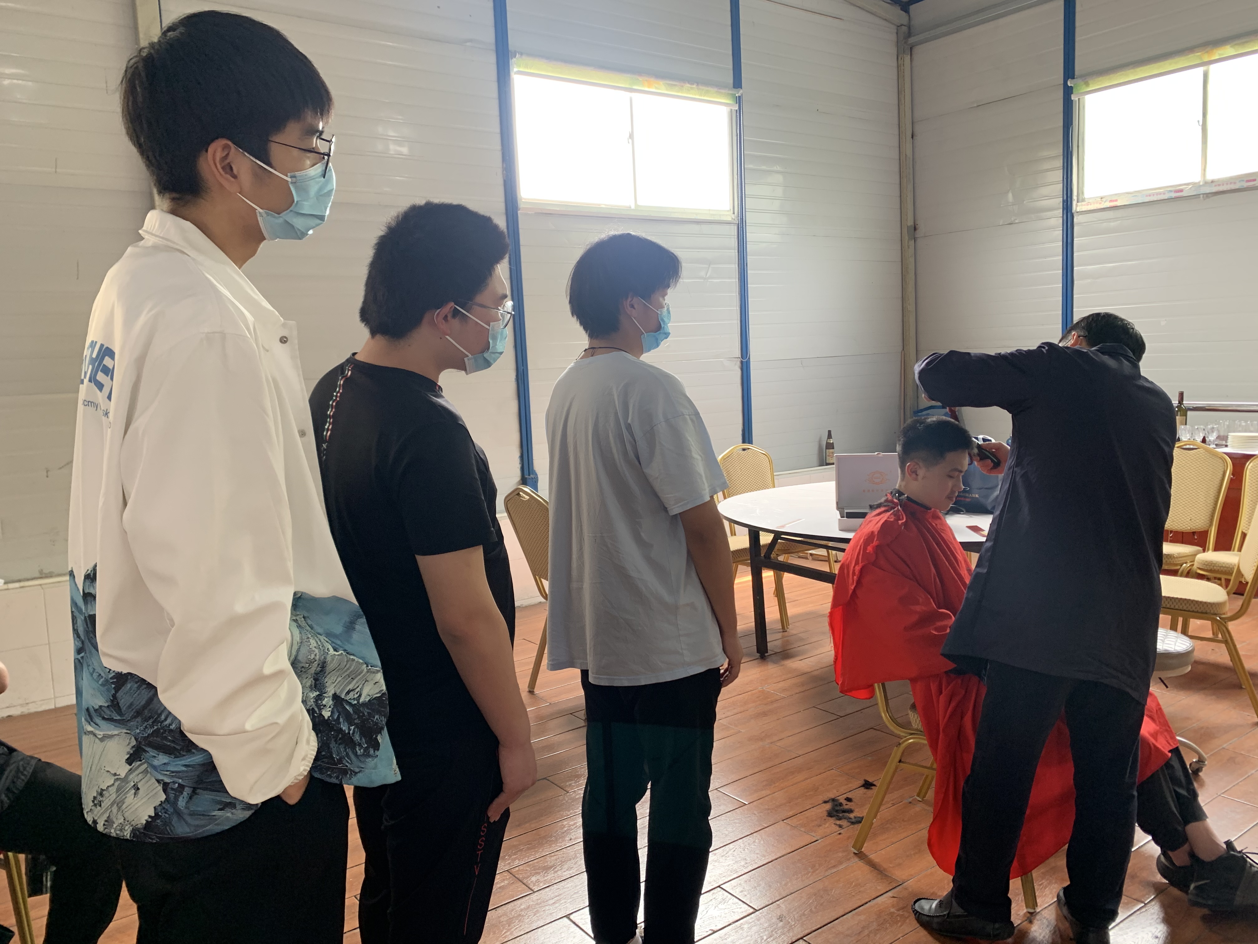受新冠疫情形势的影响,我校均学生实⾏严格的闭环管理。天⽓越来越炎热,理发难成为了学⽣的“头”等⼤事。