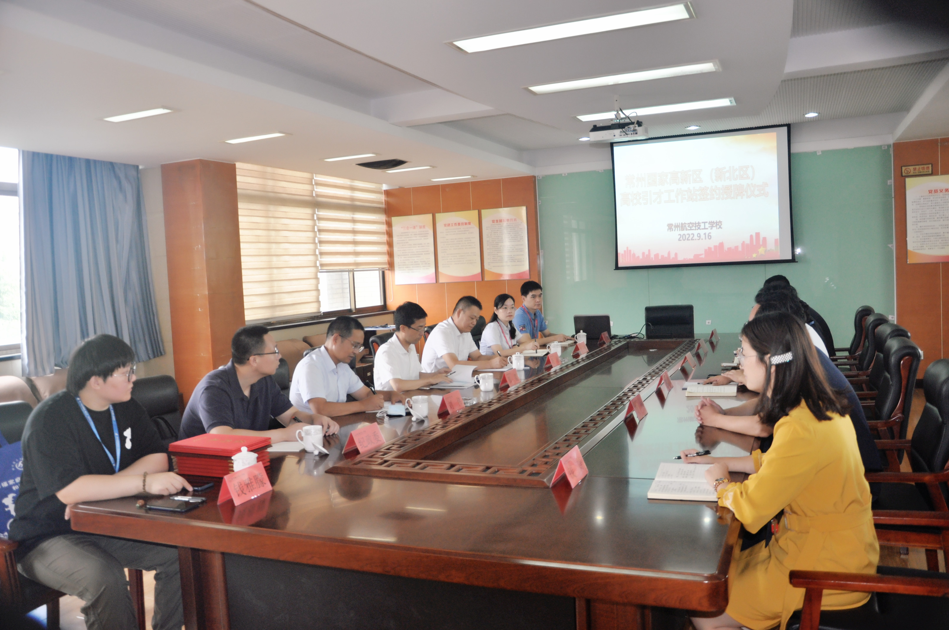 为深入贯彻落实习近平总书记关于深入实施新时代人才强国战略,全方位培养、引进、用好人才重要指示精神。为进一步加强人才引进与培养,深化校政企三方合作与交流,推动新北区人才队伍建设。9月16日上午,在常州航空技工学校举行常州国家高新区(新北区)高校引才工作站签约授牌仪式。