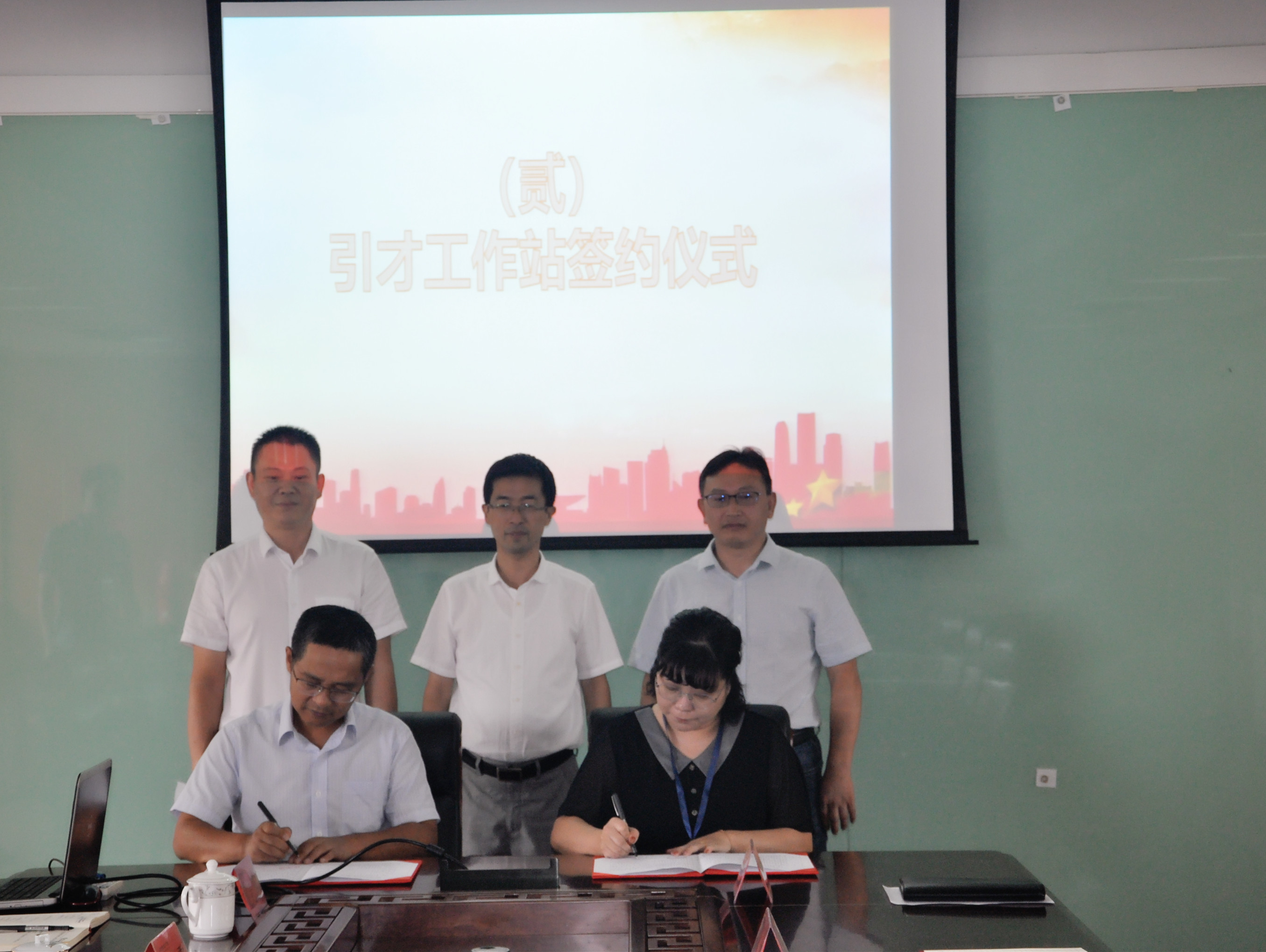 常州国家高新区(新北区)人社局人力资源开发中心主任刘伟与我校常务副校长蒋志燕签署《高校人才工作站合作协议书》。