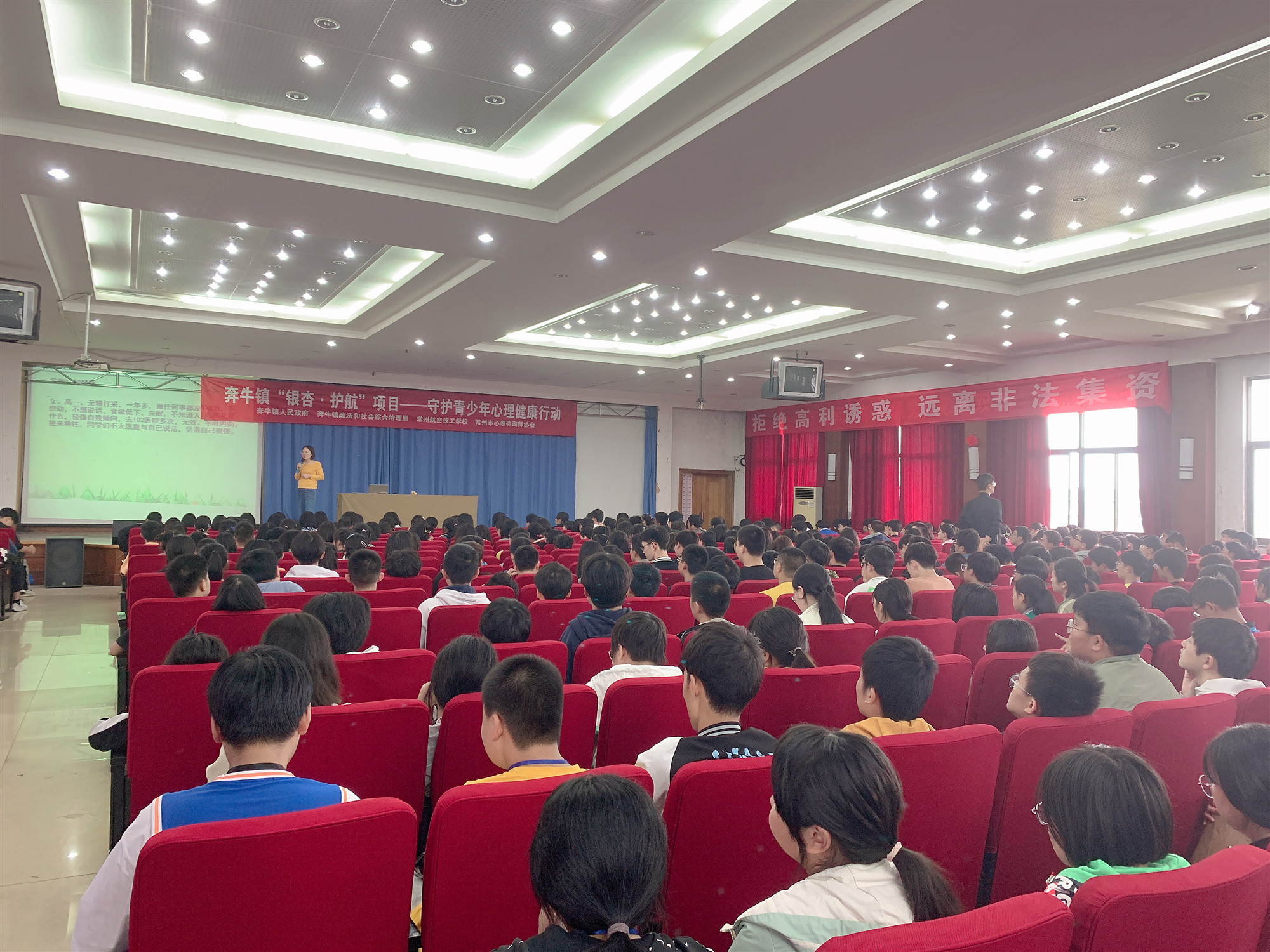 9月28日下午,奔牛镇“银杏·护航”项目走进常航,奔牛镇心理教育专家来我校开展心理健康讲座,守护青少年心理健康。在讲座中,专家针对我校学生的心理特点以及易出现的心理问题,结合当下热点问题,用别具一格的语言,带领同学们进行了一次探索自己的内心世界的旅行。
