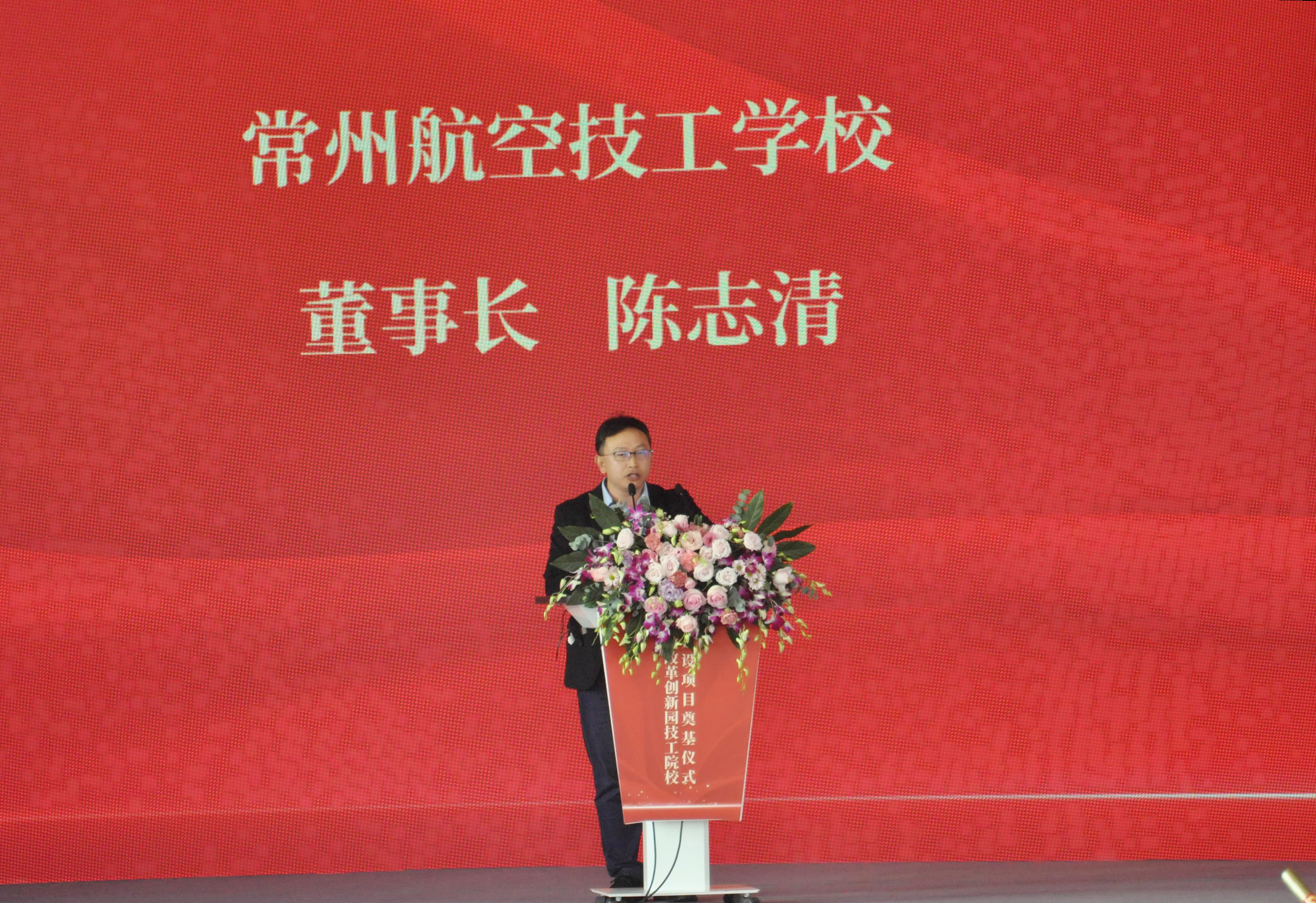江苏省人力资源与社会保障厅副厅长顾潮,常州市人民政府副市长桓恒,江苏省人社厅职业能力建设处处长李建方,常州市人民政府副秘书长石江水,钟楼区委常委、邹区镇党委书记万建新,钟楼区委常委、副区长王旭锋,市教育、民政、人社等部门的分管领导,钟楼区委区政府和高新区等的相关单位的领导、常州航空技工学校校长陈志清及校领导、施工单位代表等出席仪式。仪式由常州市人力资源与社会保障局党组书记、局长王竹林主持。