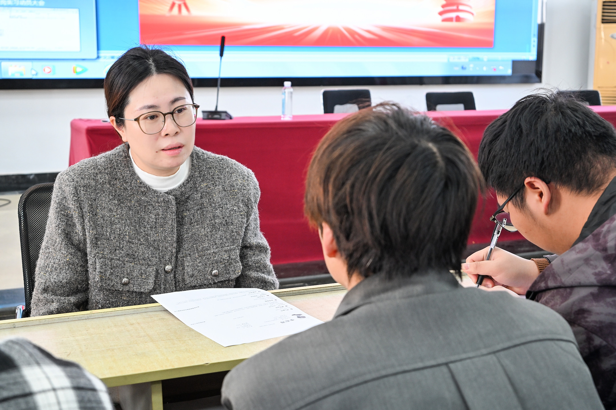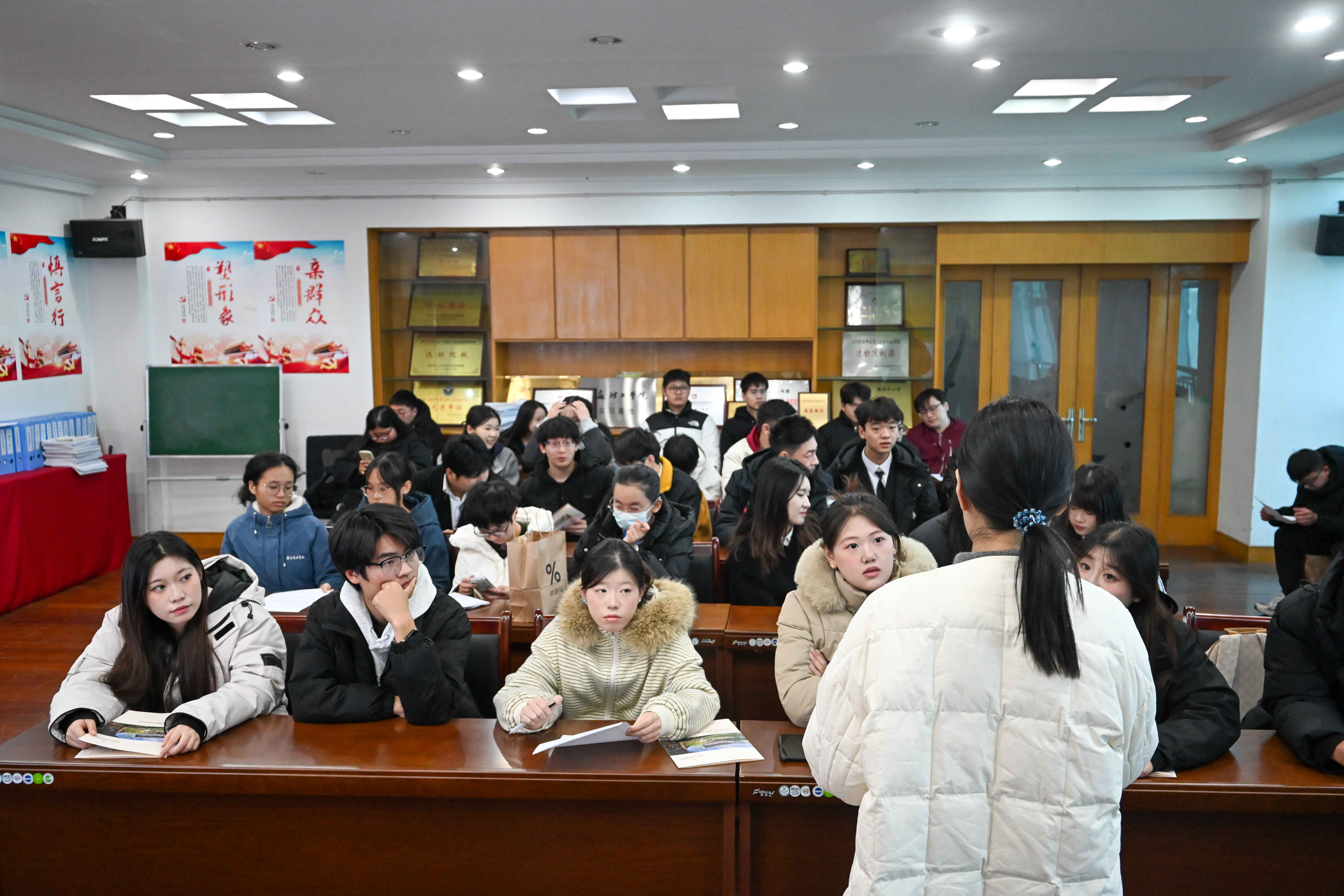 宣讲过程中,现场氛围热烈,学子们踊跃投递简历,主动向招聘人员咨询岗位细节、职业发展规划等问题,招聘团队耐心细致地逐一解答,为学子们提供专业的求职指导。