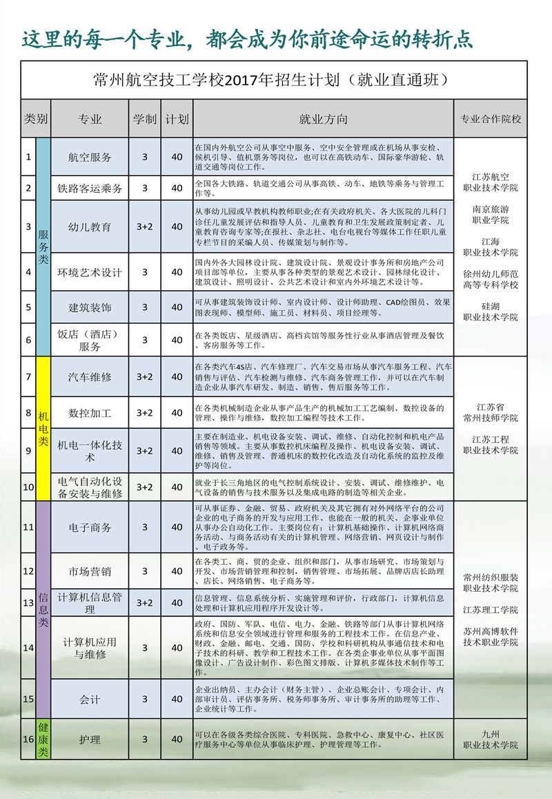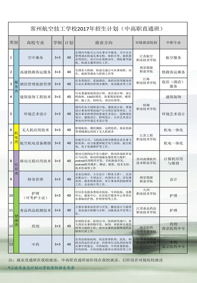 常州航空技校对口高考招生简章