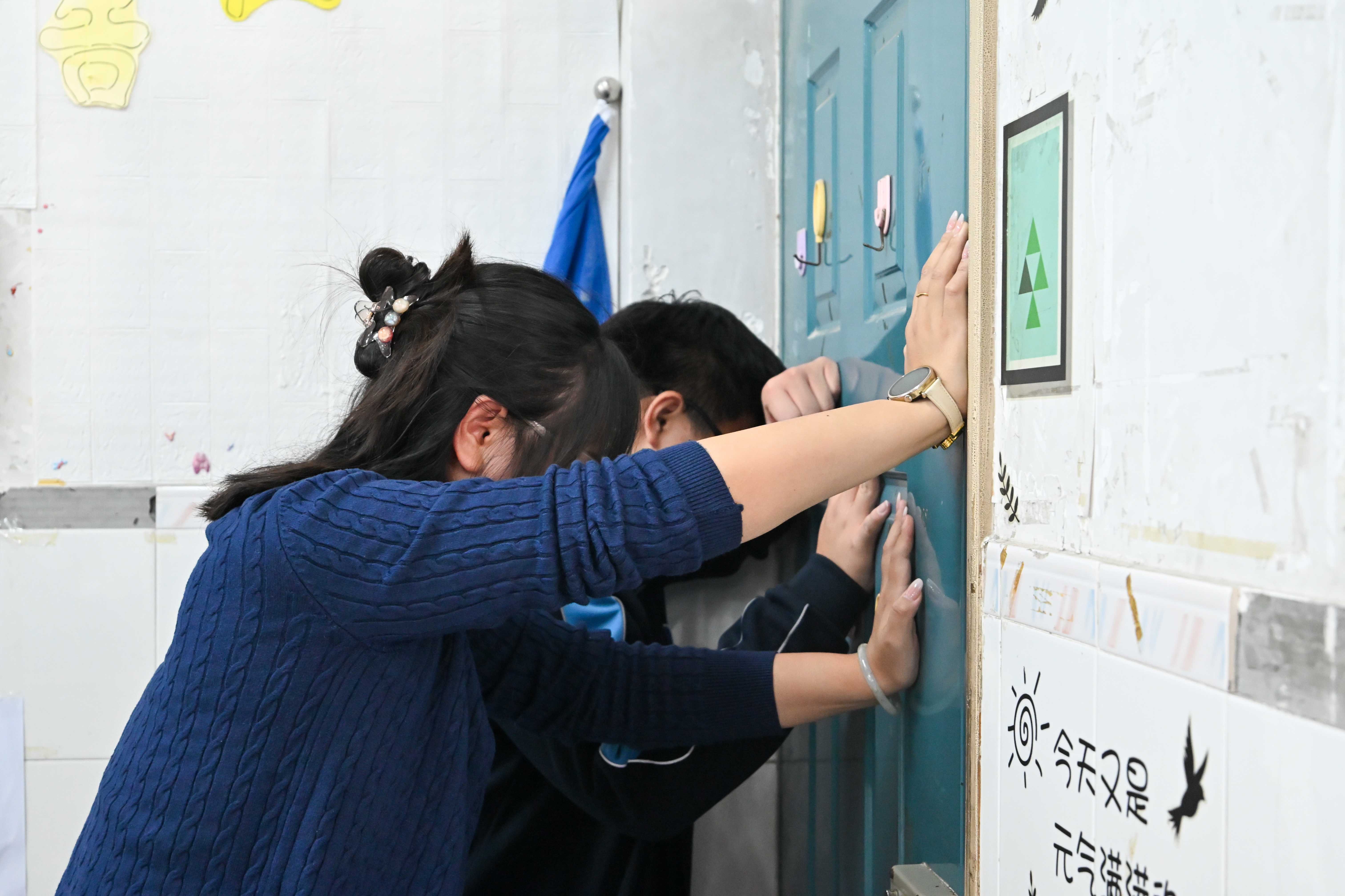 随着模拟“暴徒”试图闯入校园的警报声响起,演练正式拉开序幕。安保人员迅速反应,手持防暴盾牌、钢叉等器材果断上前,形成防御阵型,与“暴徒”展开周旋,为师生避险争取时间;班主任第一时间关闭教室门窗,组织学生远离门窗危险区域,保持安静有序;各应急小组协同配合,快速疏导、清点人数,整个过程紧张高效、环环相扣,充分展现了我校师生良好的应急素养与协作能力。