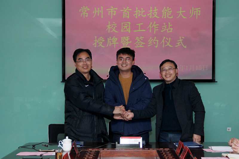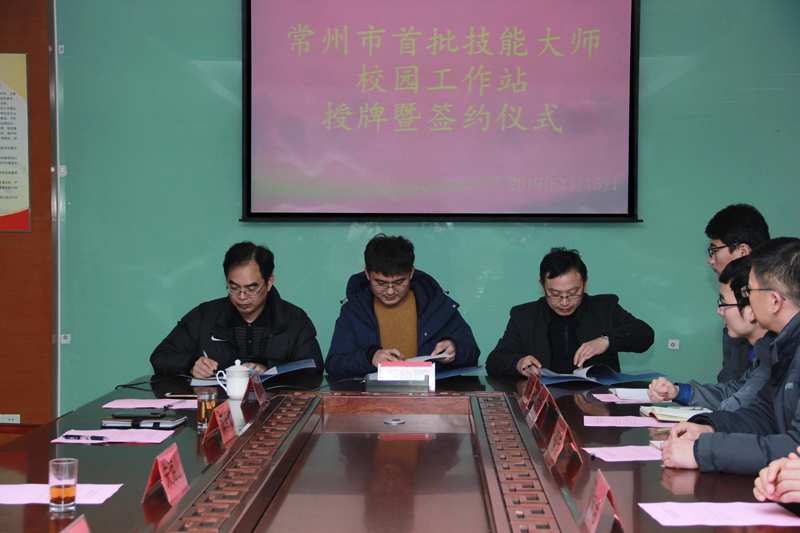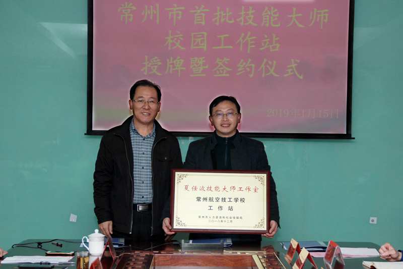 会上,常州航空技校、常州工学院和夏任波签订了三方协议,市人社局副局长程沫芝给学校授予技能大师校园工作站铭牌。