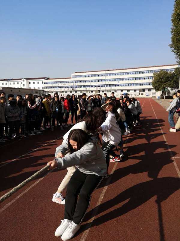 “一二一二一二……”振振呐喊声让学生体会到拔河的乐趣,青春就该尽情释放。