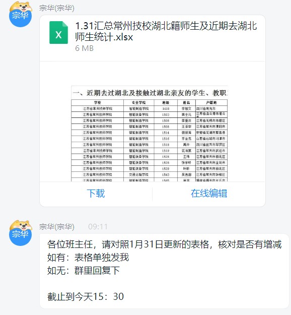 切实做好“三张清单”,即“近期去过湖北及接触过湖北亲友的学生、教职工统计表,目前在湖北的学生、教职工统计表,奔牛教育条线疫情防控统计表”的收集汇总,快速完成姓名、学校名称、家庭住址、联系电话等重要信息的建档整理工作,并针对湖北回常师生开展防疫防控重点宣讲。