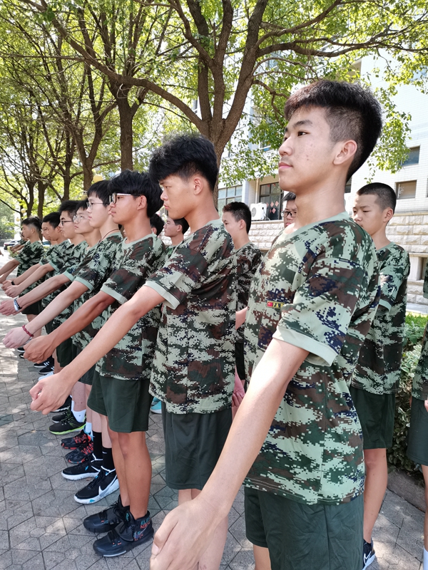 高一(1)班钱长胤同学发言,她代表2020级全体参训同学庄严承诺:把自己当成一名真正的军人来看待,以军人的身份严格要求自己。严格遵守纪律,坚决服从老师安排,听从教官指挥,虚心好学,练好每一个动作。发扬革命前辈吃苦耐劳的精神,不怕流汗,不怕炎热,克服一切困难,以高标准、严要求来约束自己。尊重老师,尊重教官,服从集体,讲纪律,按时作息。