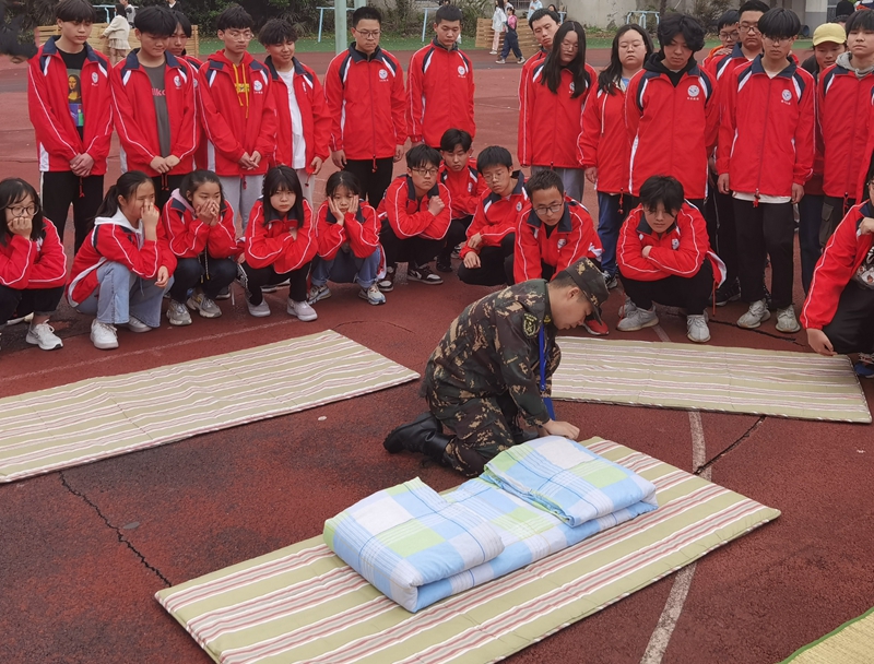 活动开始前,学校副校长兼德育处处长蔡春涛介绍了本次叠军被比赛的要求及规则,并为大家做了示范。
