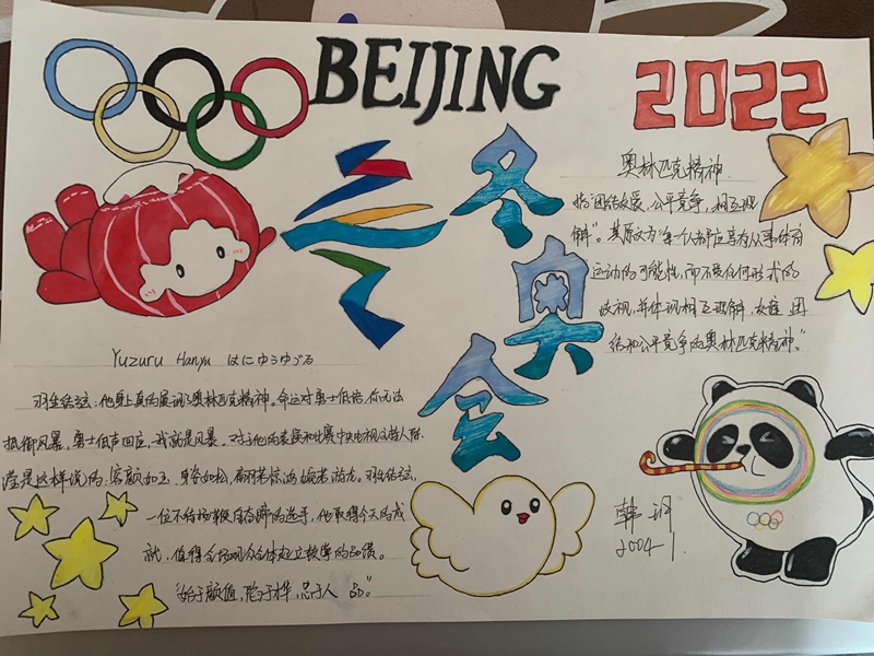 “北京冬奥会”这个大顶流怎么能不蹭一波呢,“冰墩墩”和“雪容融”当然也不能错过啊!学生们利用假期精心绘制手抄报,内容丰富,形式多样,图文并茂。在这个过程中进一步发扬了奥运精神,传播了奥运文化,培养了爱国主义情怀。