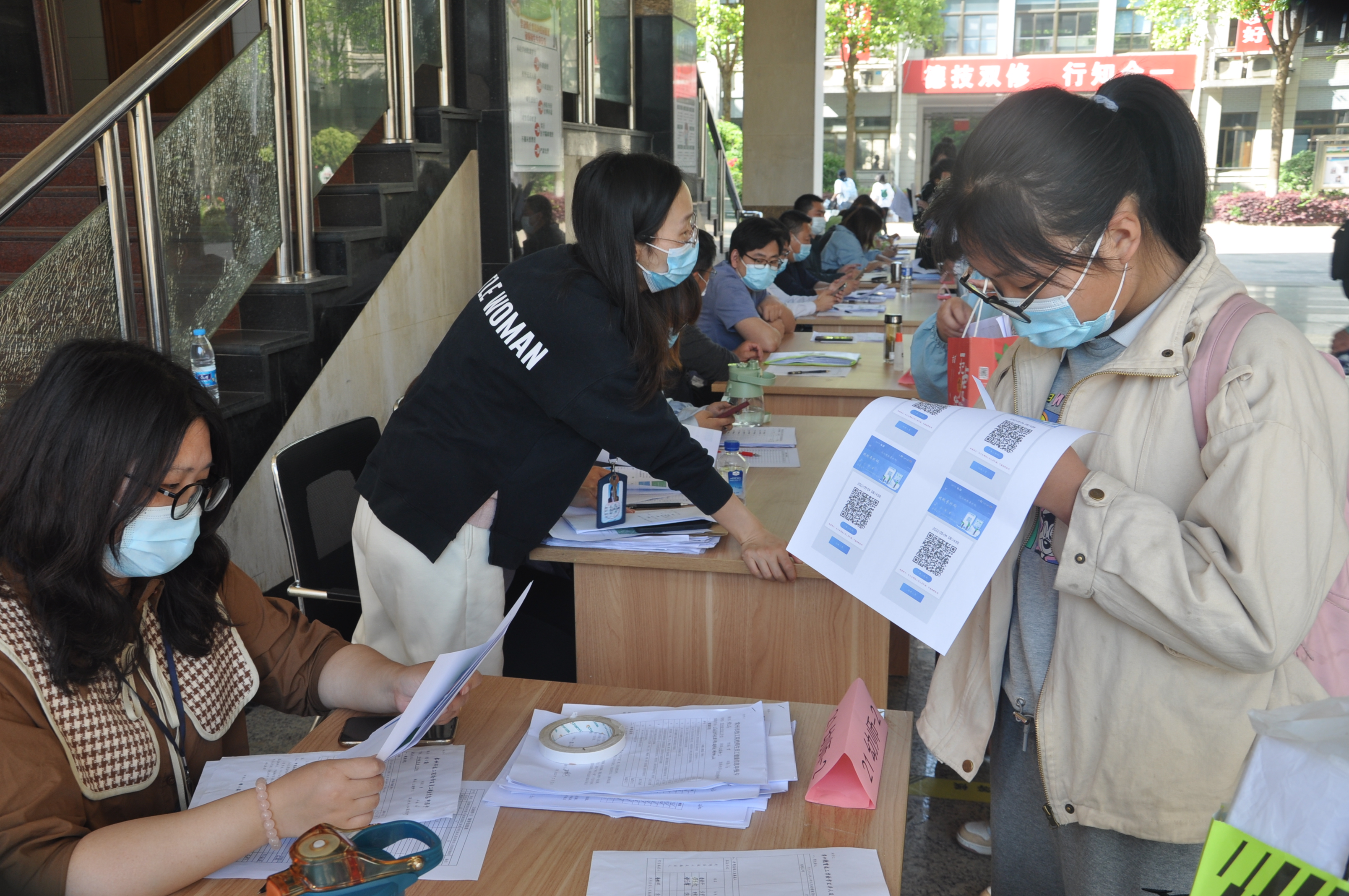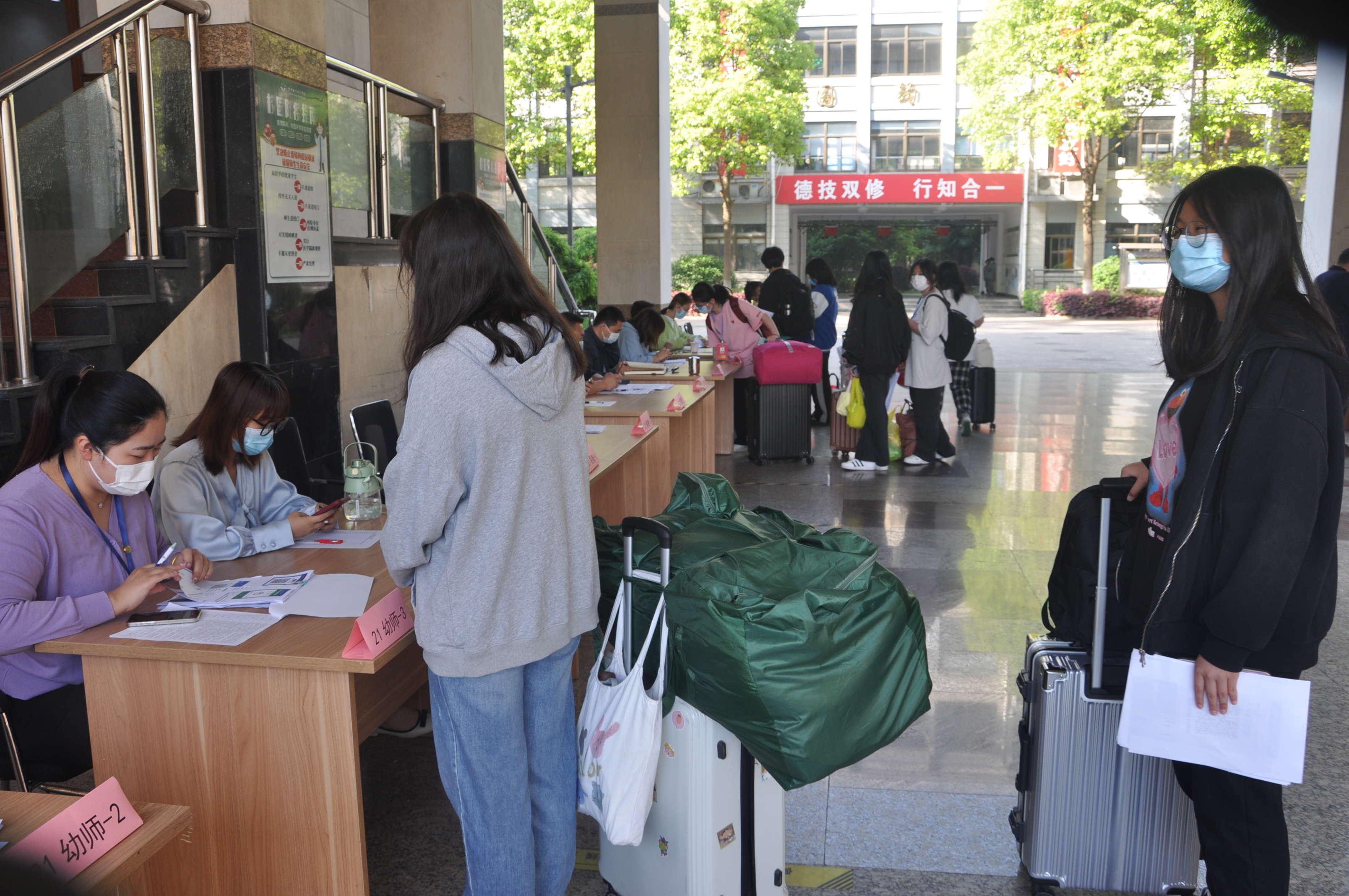 各班主任在树人楼一楼过道设置“材料审核、收集”区,学生向班主任递交“复学材料”,如不符合复学要求,学生原路返回,劝返回家,不得进入教学、生活区域。