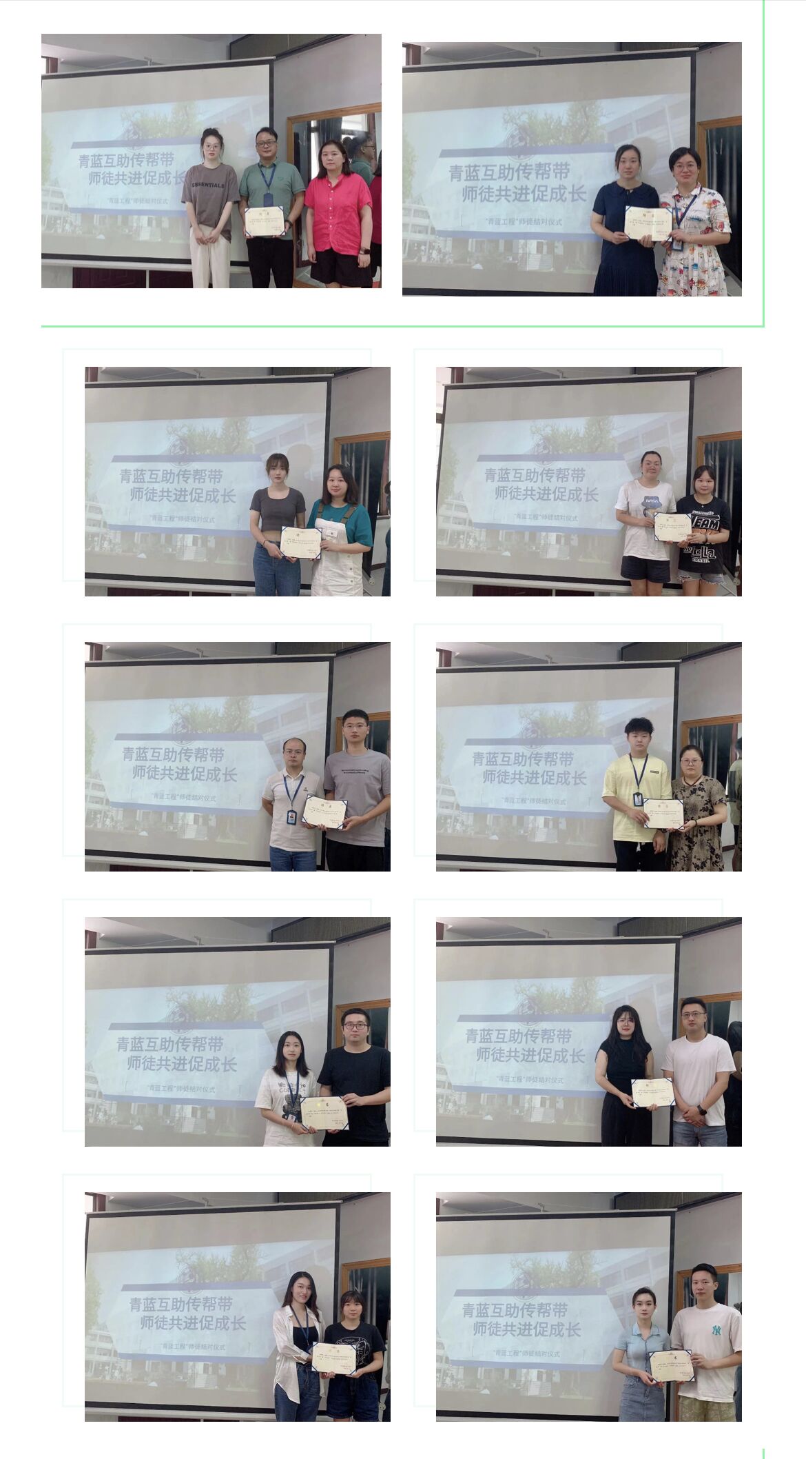 8月17日,我校举行2022-2023学年班主任青蓝工程结对仪式。仪式上,骨干班主任与青年班主任结为师徒,并签署了青蓝工程拜师协议。班主任青蓝工程的开展,旨在提高班主任管理水平和育人能力,有效落实班主任队伍建设,扎实推进学校德育工作。青年班主任在优秀同伴的引领下成长迅速,通过经验分享,教学相长,师徒共同进步。