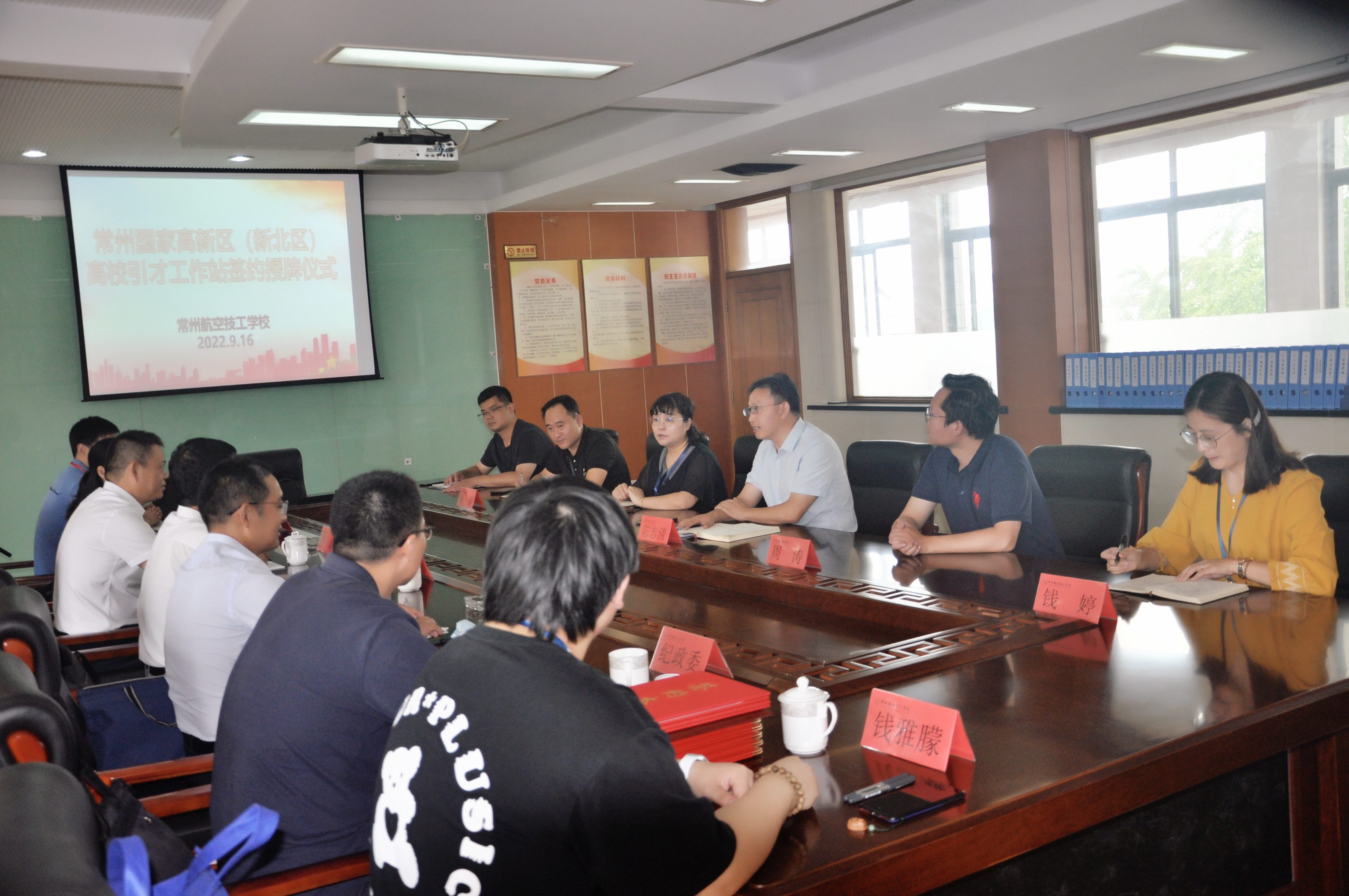 为深入贯彻落实习近平总书记关于深入实施新时代人才强国战略,全方位培养、引进、用好人才重要指示精神。为进一步加强人才引进与培养,深化校政企三方合作与交流,推动新北区人才队伍建设。9月16日上午,在常州航空技工学校举行常州国家高新区(新北区)高校引才工作站签约授牌仪式。