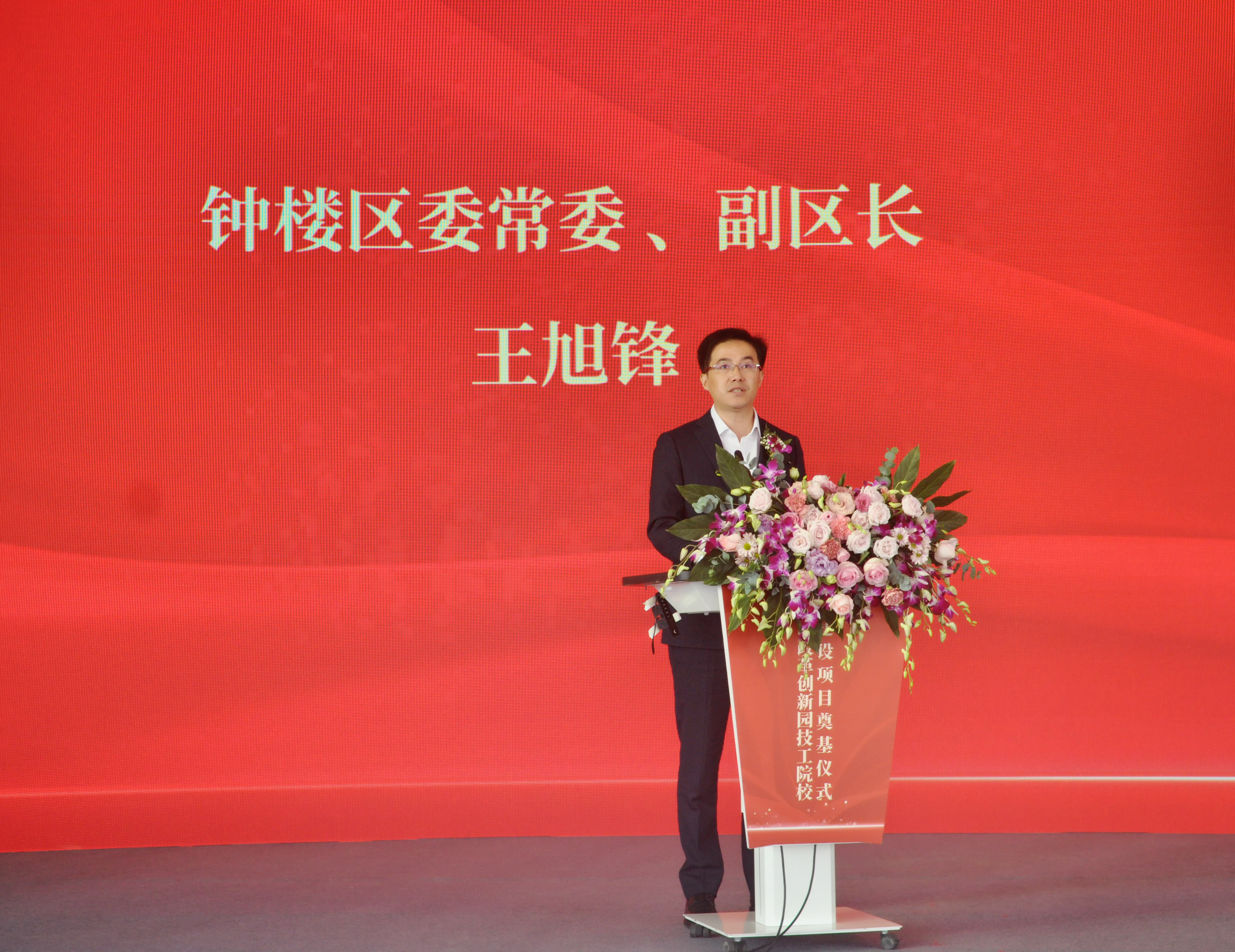 钟楼区委常委、副区长王旭锋发表讲话。他表示常州“两湖”创新区的建设是常州市委市政府聚焦“国际化智造名城、长三角中轴枢纽”城市定位,实施“532”战略,融入长三角一体化发展大局作出的重大战略部署。殷杏泰职教改革创新园作为常州“两湖”创新区的重要组成部分,同时充分肯定了常州航空技工学校对推动钟楼区教育发展起了积极推动作用,为繁荣常州职业教育,培养高素质技能人才做出积极贡献。