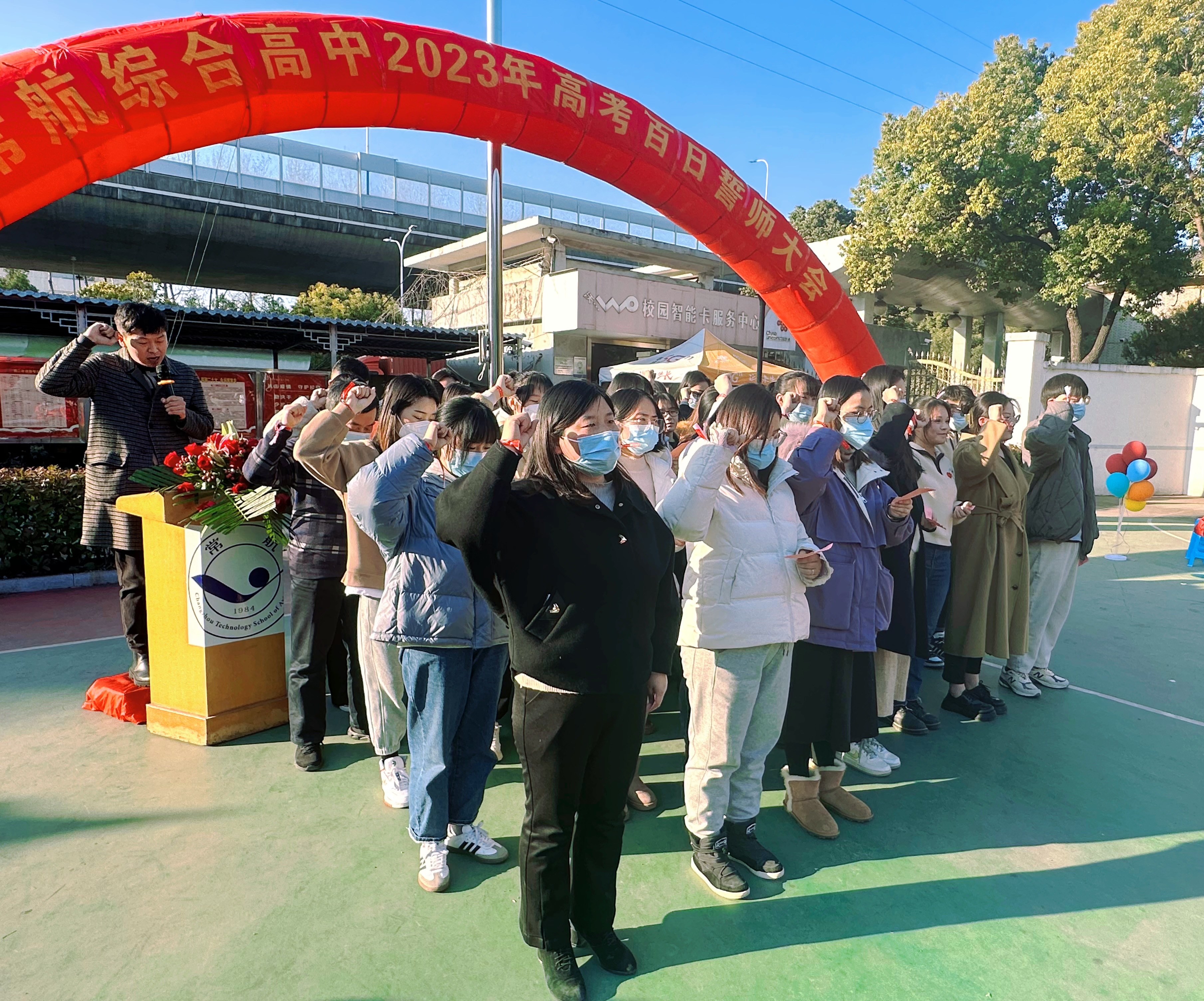 十年寒窗,潜心铸剑待出鞘;竹杖芒鞋,志在山巅冲九霄。为鼓舞高三师生气势,明确高三学子高考目标,树立高三学子必胜信心。1月8日,在距离职教高考100天之际,我校举行2023年高考百日誓师大会。学校领导、高三全体教师以及高三家长代表共同见证了高三学子们志冲九霄的宣誓。