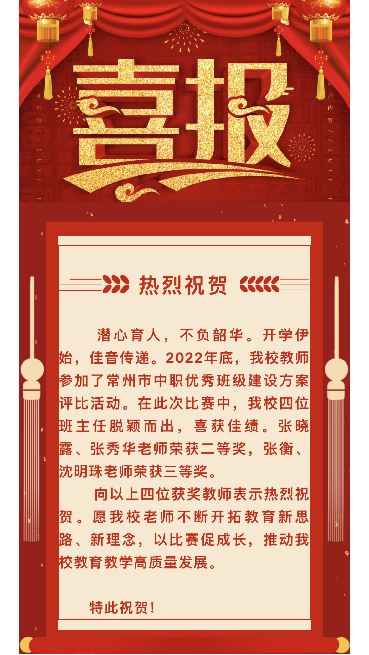 2017年被评为常州市技工院校优秀班主任