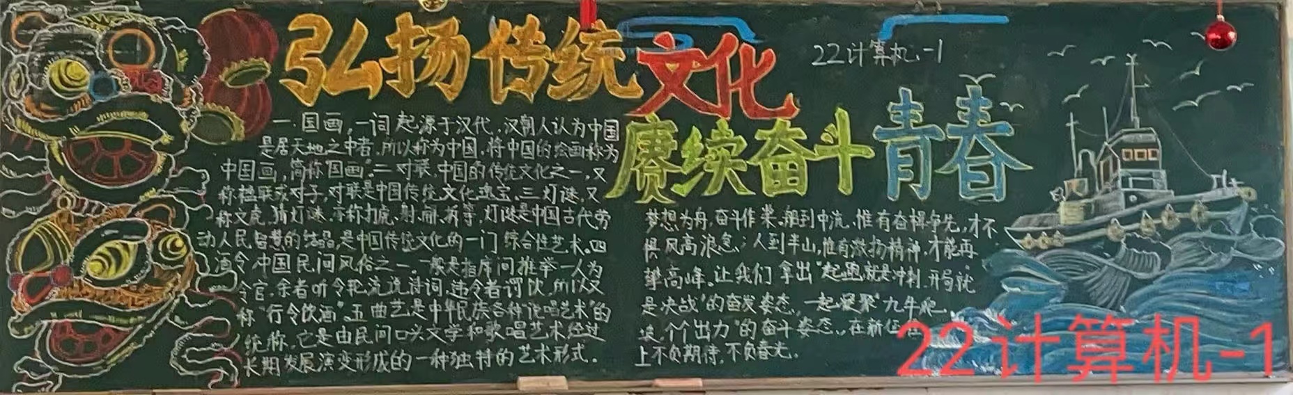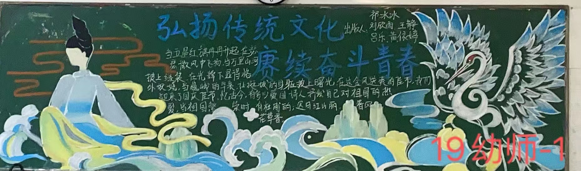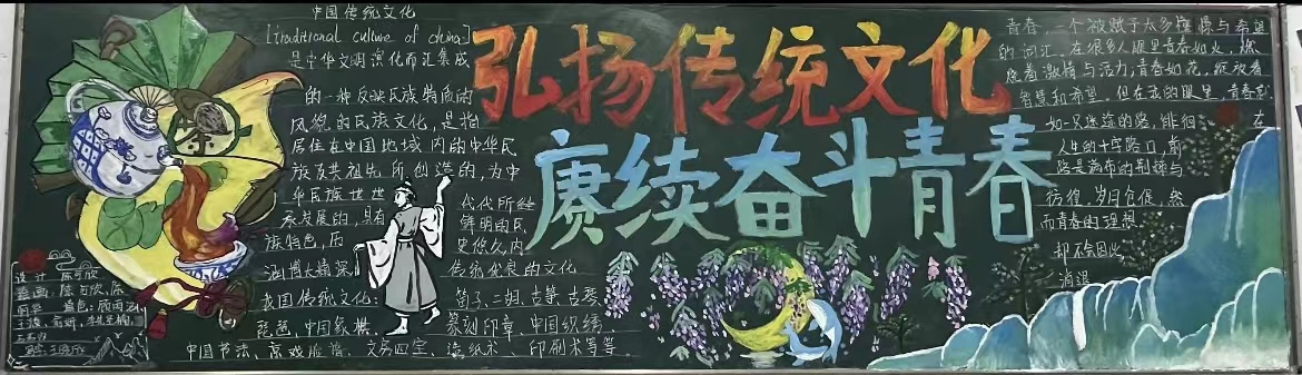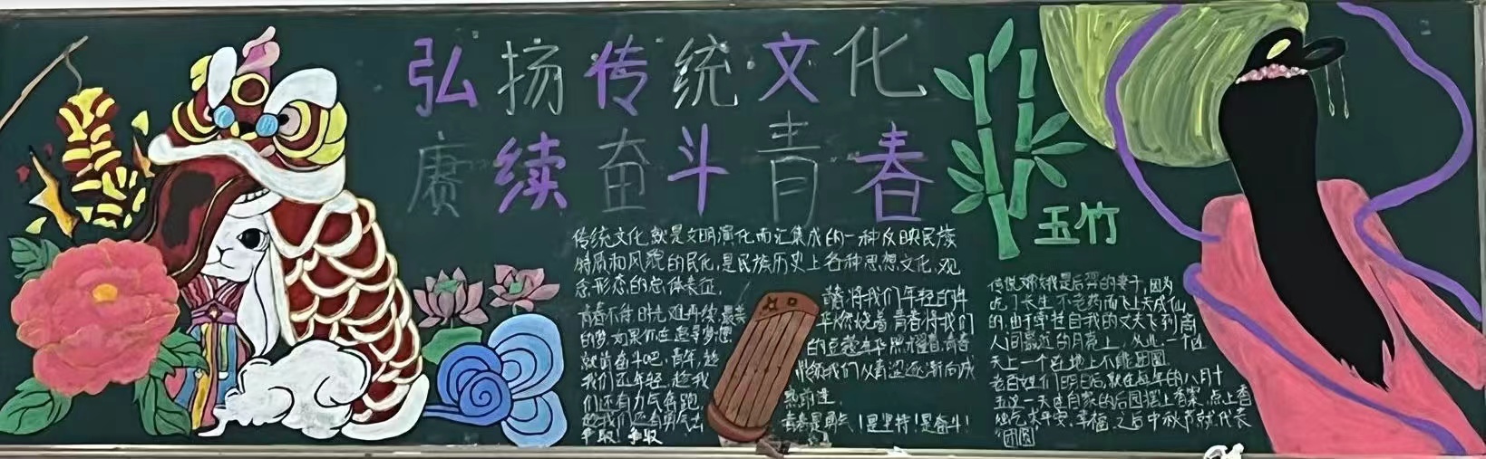 与此同时,我校以“弘扬传统文化,更需奋斗青春”为主题举行专题黑板报评比活动。一笔一划绘出精美画面、一撇一捺书写情怀传承民族文化。。
